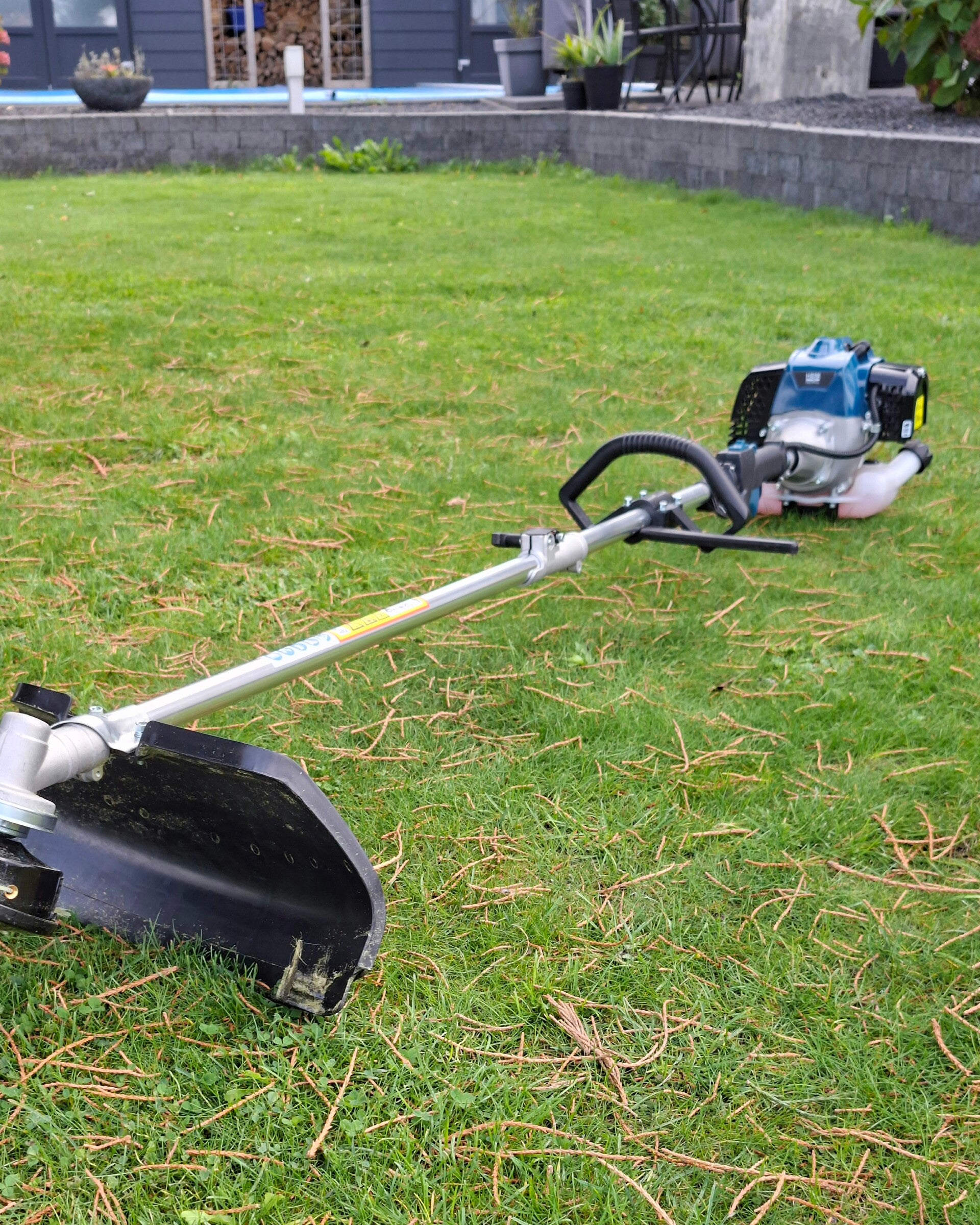 Dit veelzijdige apparaat is speciaal ontworpen voor diverse toepassingen en kan met de juiste opzetstukken verschillende taken efficiënt uitvoeren. De bosmaaier, uitgerust met een metalen cirkelzaagblad, is ideaal voor het maaien van hardnekkig onkruid en klimplanten met een diameter tot 13 mm. De grastrimmer, voorzien van een nylon snijkop, is perfect voor het bijwerken van grasranden en moeilijk bereikbare plaatsen, terwijl de heggenschaar met een heen en weer bewegend mes geschikt is voor het snoeien van heggen en struiken met een diameter tot 24 mm. Daarnaast is de kettingzaag ontworpen voor het snoeien van takken in bomen en zorgt ervoor dat hoge takken gemakkelijk bereikbaar zijn.